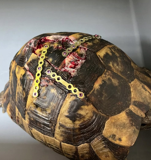 Kabuk kırıklarının onarımı ciddi cerrahi müdahale ve hijyen gerektirir. Bu işlemler, sadece egzotik hayvan veteriner hekimleri tarafından uygulanmalıdır.