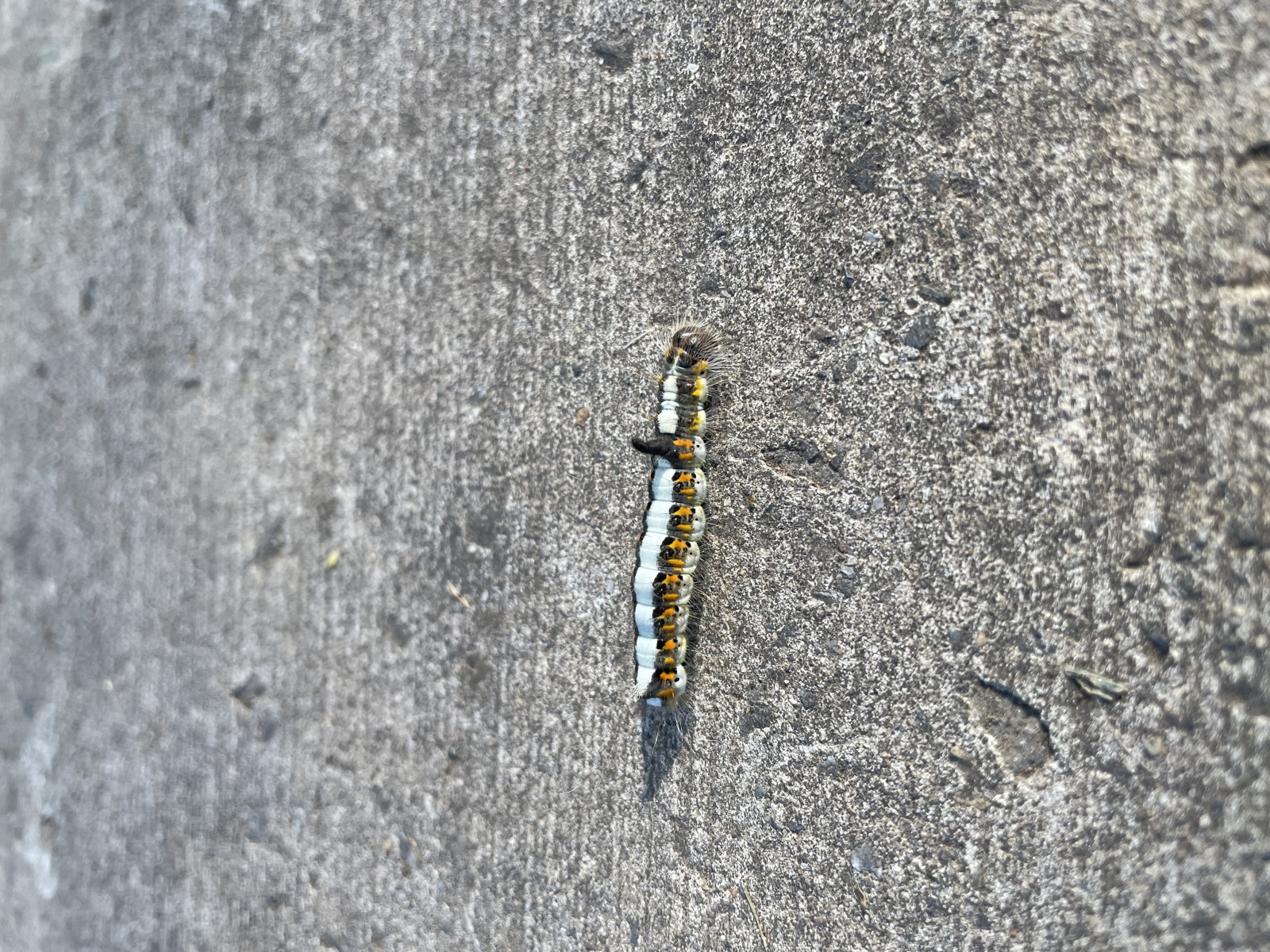 Larvası (tırtılı), en belirgin özelliklerinden biridir. Vücudu yoğun siyah ve sarı renkte, yanlarında kırmızımsı bir çizgi bulunur. Sırtında, özellikle 4. segmentte bulunan uzun, siyah bir kıl kümesi (kambur) ve 11. segmentte daha küçük bir tepecik vardır.