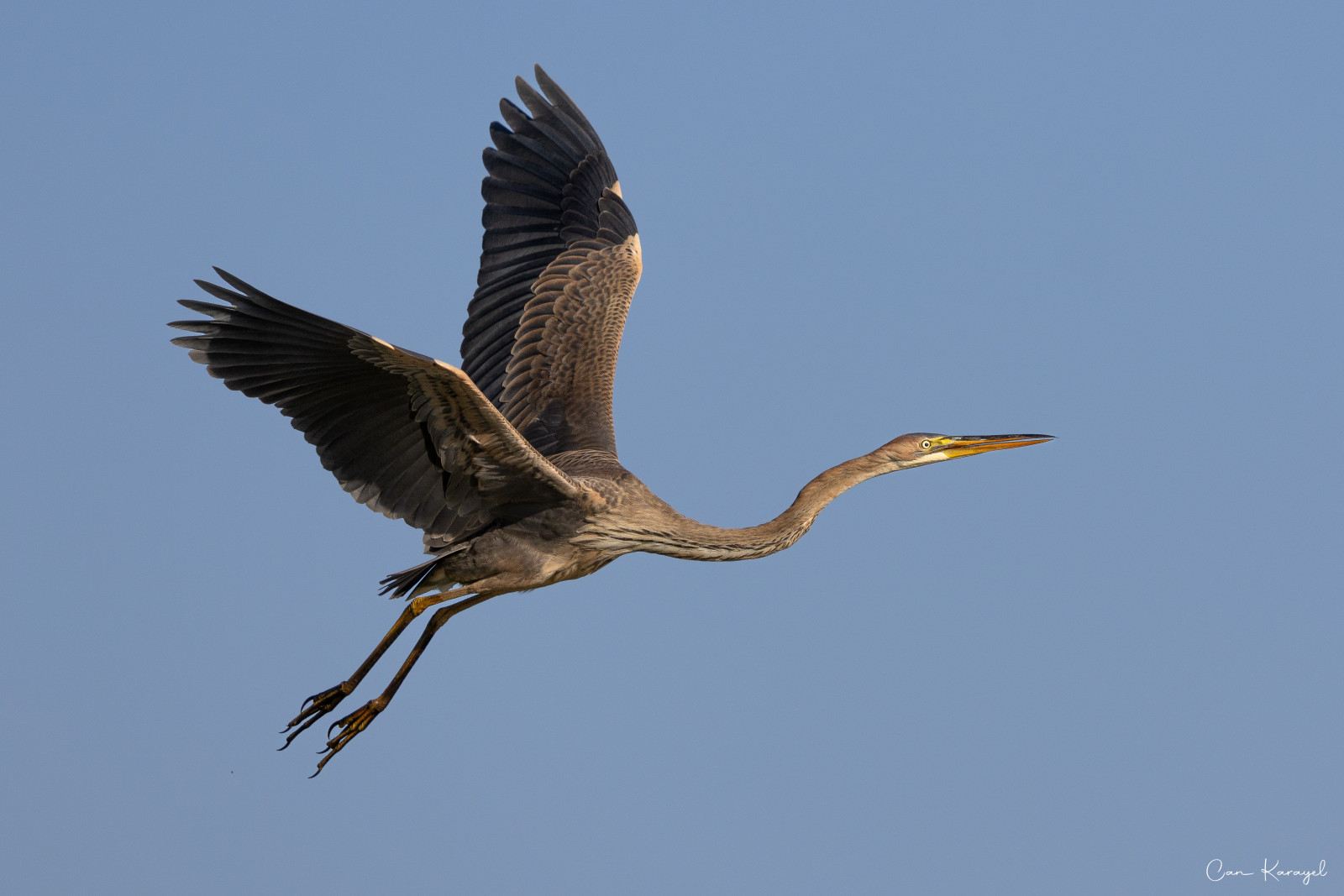 - Duruş ve Boyun: Boynu çok uzun ve incedir; uçuşta veya avlanma sırasında boynu S şeklindeki yılanvari bir kıvrım halinde tutma eğilimindedir. Uçuş sırasında bacakları kuyruğun çok ötesine uzanır.