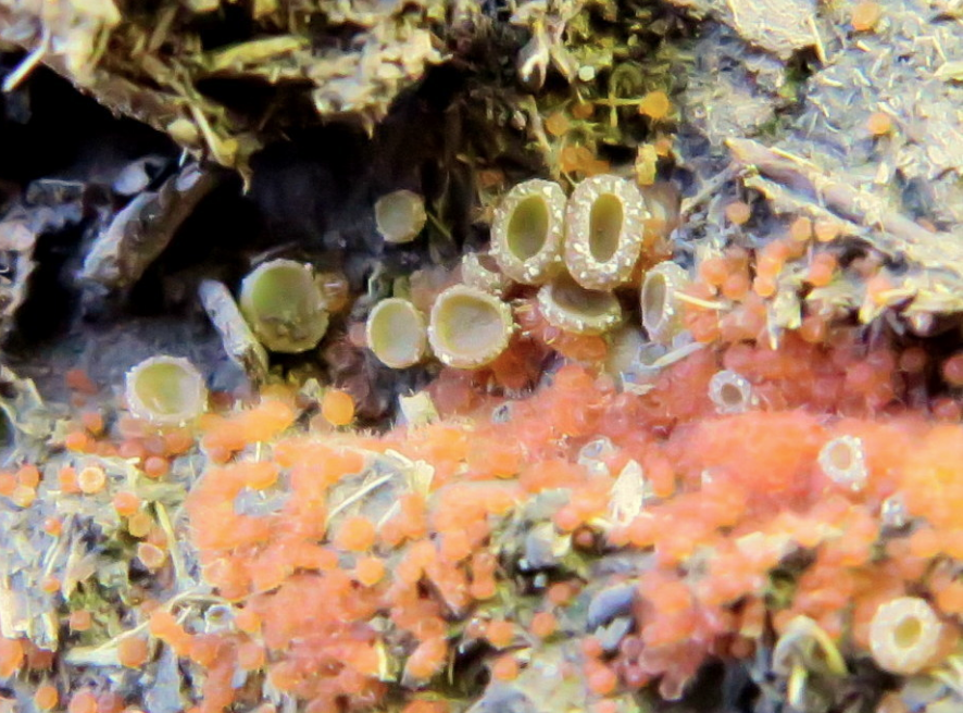 - Meyve Gövdesi (Apothecia): Mantarın meyve gövdesi oldukça küçüktür (genellikle 1 ila 5 mm çapında). Başlangıçta küremsi iken, olgunlaştıkça açılır ve sığ bir kadeh veya disk şeklini alır.