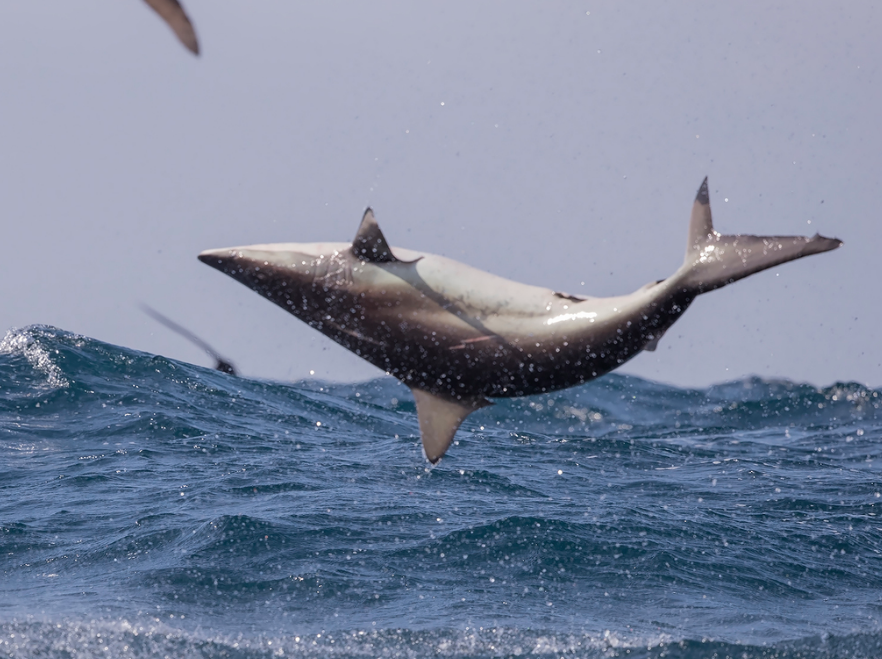 - Avlanma Davranışı (Ayırt Edici Özellik): Bu türün en ünlü özelliği, beslenme çılgınlığı sırasında hızla yukarı doğru yüzerek ve kendi ekseni etrafında dönerek avlanmasıdır. Bu hareket sırasında genellikle su yüzeyinden dışarı fırlar ve havada döner; bu davranış, onun "Sıçrayan Köpekbalığı" adını almasına neden olmuştur.
