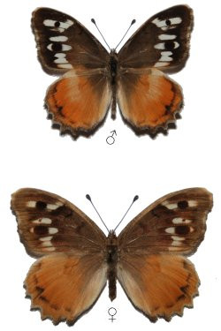 Cinsel dimorfizm hafif derecede belirgindir; dişiler genellikle erkeklerden biraz daha büyük ve kanatlarındaki açık renkli bantlar daha geniş ve belirgin olabilir.