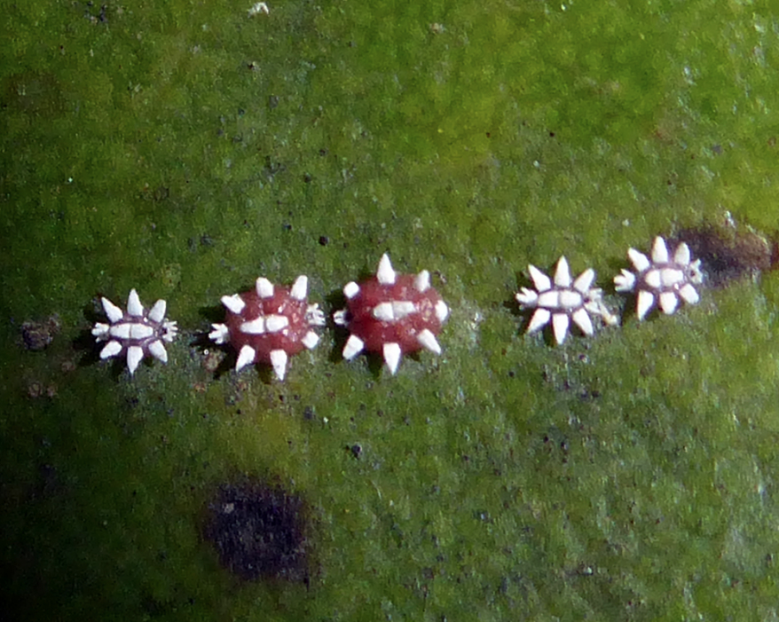 - Beslenme: Delici-emici ağız yapılarıyla bitkilerin sürgün, yaprak ve meyvelerinde hücre özsuyunu emerek beslenirler. Bu durum, bitkilerin zayıflamasına ve verimin düşmesine neden olur. Türlerin çoğu polifagdır, yani çok çeşitli bitkilerde zarar yapabilirler (incir, turunçgil, zeytin, süs bitkileri vb.).