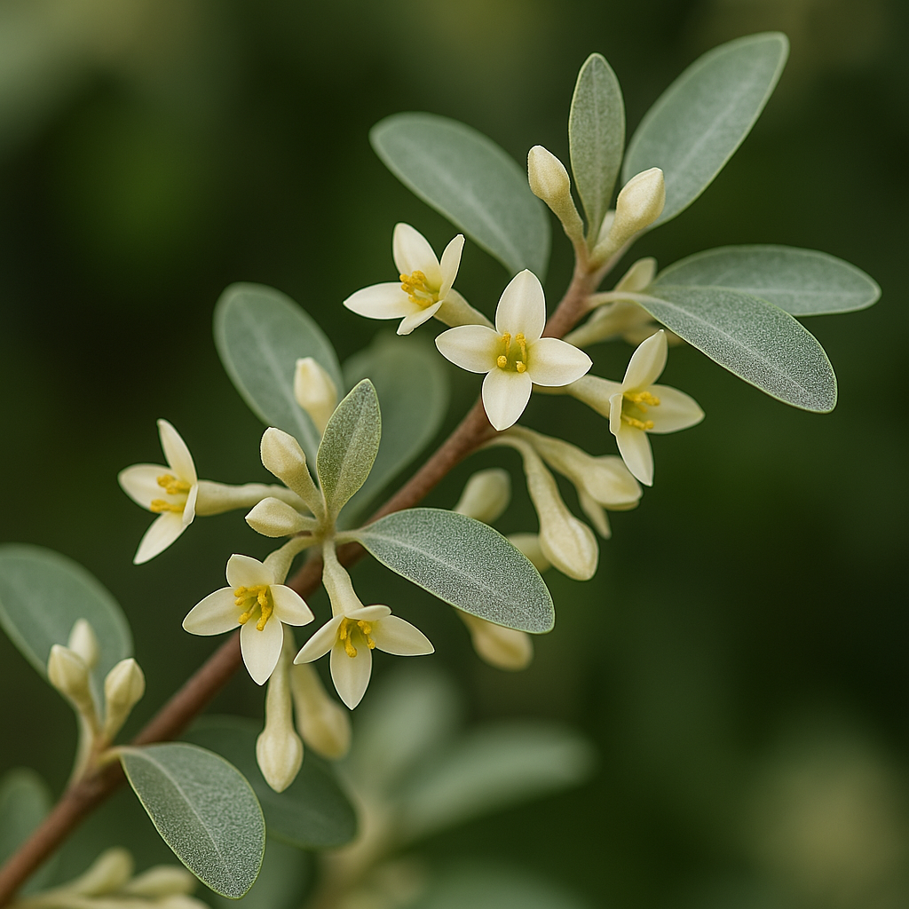 - Yaprak Morfolojisi: Yapraklar genellikle alternat (ardışık) dizilimli, basit ve tam kenarlıdır. En belirgin özellikleri, yaprak yüzeylerinin (özellikle alt yüzeylerinin), genç sürgünlerin ve bazen meyvelerin gümüşi veya pas rengi pullar veya yıldızsı tüylerle kaplı olmasıdır. Bu yapılar, bitkinin su kaybını azaltmasına ve kuraklığa dayanmasına yardımcı olur.
