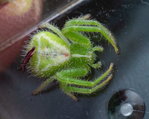 - Ayırt Edici Özellikler: Kesin teşhis, özellikle erkek palpal organlarının ve dişi epigyne yapısının detaylı mikroskopik incelenmesiyle belirlenir. Yeşil renkli ve tüylü vücudu, bu türün genel olarak tanınmasına yardımcı olur.
