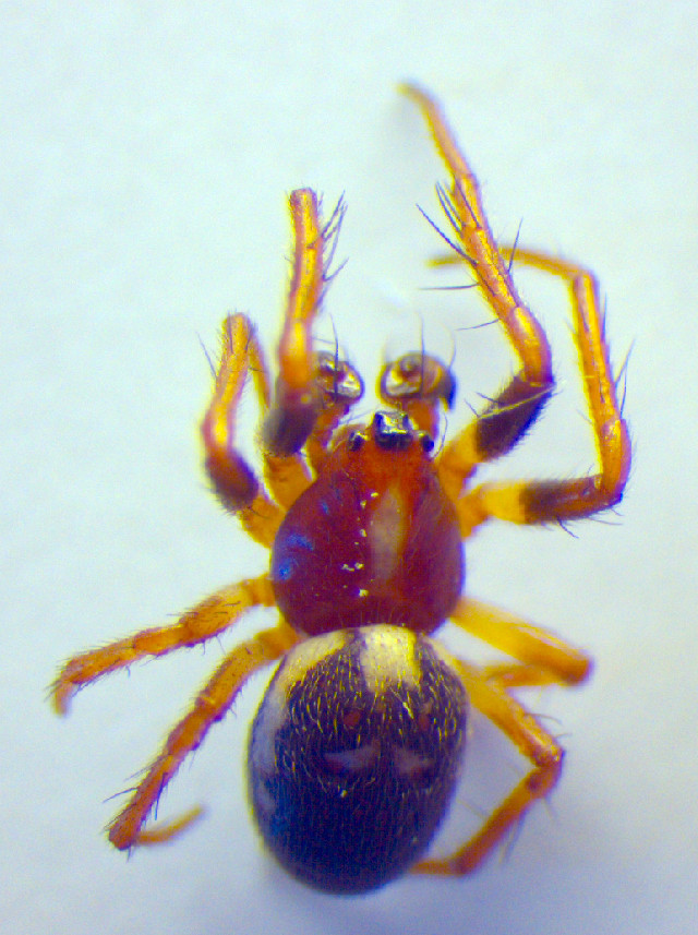 - Karapaks (Prosoma): Kahverengidir, dorsalde (sırt kısmında) beyaz uzunlamasına bir nokta veya şerit bulunabilir, arka kısım daha koyudur, göz bölgesi açık kahverengidir.