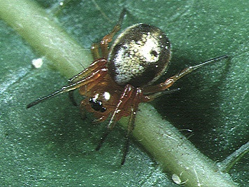 - Erkek: Vücut uzunluğu yaklaşık 2.5-3.5 mm civarındadır. Karnı koyu kahverengiden parlak siyaha kadar değişebilir ve neredeyse hiç desen göstermez.