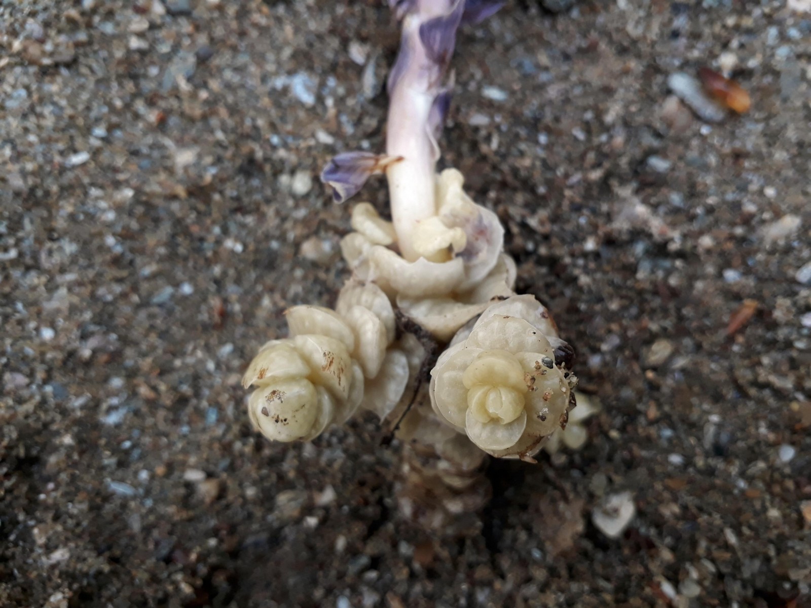 20 cm. büyüyebilir. Stem dalsızdır. 4 adet stamen görülür. Calyx dört lobludur. Yapraklar alternat ve stalksızdır. Ağaç köklerinde görülen parazit bir bitkidir. Çatallı beyazımsı bir yeraltı gövdesinden oluşur. Bu gövde kalın, etli ve renskiz yapraklara sahiptir. Yapraklar yüzeyin altında oldukları için eğik biçimdedir. Yüzeyde görülen tek bölüm, kısa çiçekler taşıyan sürgünlerdir. Bunlar iki dudaklı ve donuk mor renklidir. Pullar su salgılayarak bitki çevresindeki zemini yumuşatır. Mart, Nisan ve Mayıs aylarında çiçek açar.