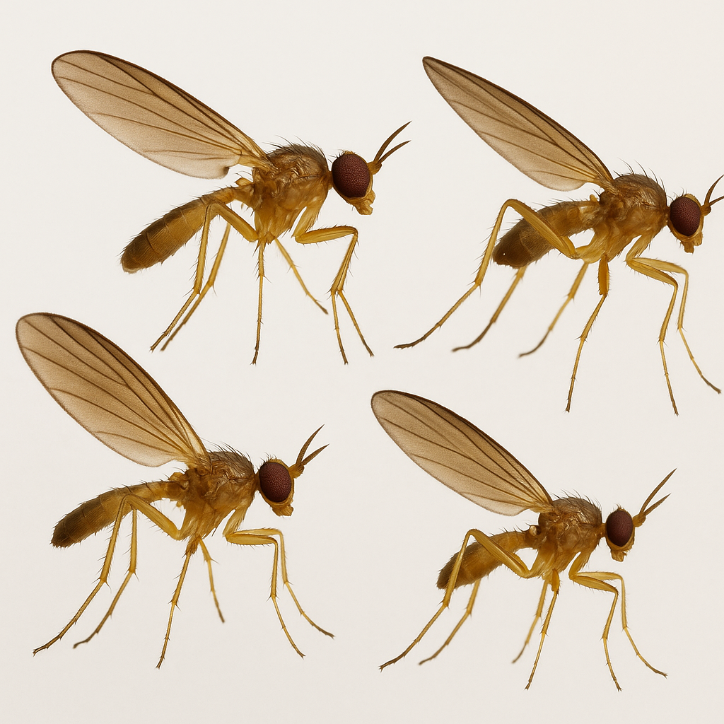 (Küçük, dar kanatlı ve mızrak şeklinde uzanan yapısıyla tanınan; yaprak altlarında, nemli alanlarda yaşayan ve bazen eşeysiz üreme gösteren sinek familyası.)