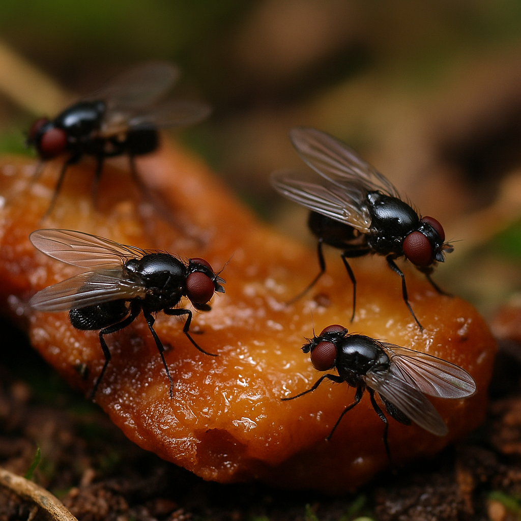 SoruCevap “Örümceğin avında ne işleri var?”Çünkü avın sıvı kısmını örümcekle birlikte emerler – bu davranışa kleptoparazitizm denir “Etin üzerinde ne arıyorlar?”Çiğ et ve terli hayvanlardan sıvı protein çekmeye çalışırlar “Bunlar parazit mi?”Bazı türlerin larvaları diğer böceklerin vücutlarında gelişebilir🧬 “Bilimsel önemi var mı?”Kleptoparazit davranış, simbiyotik ilişkiler ve evrimsel strateji açısından incelenir