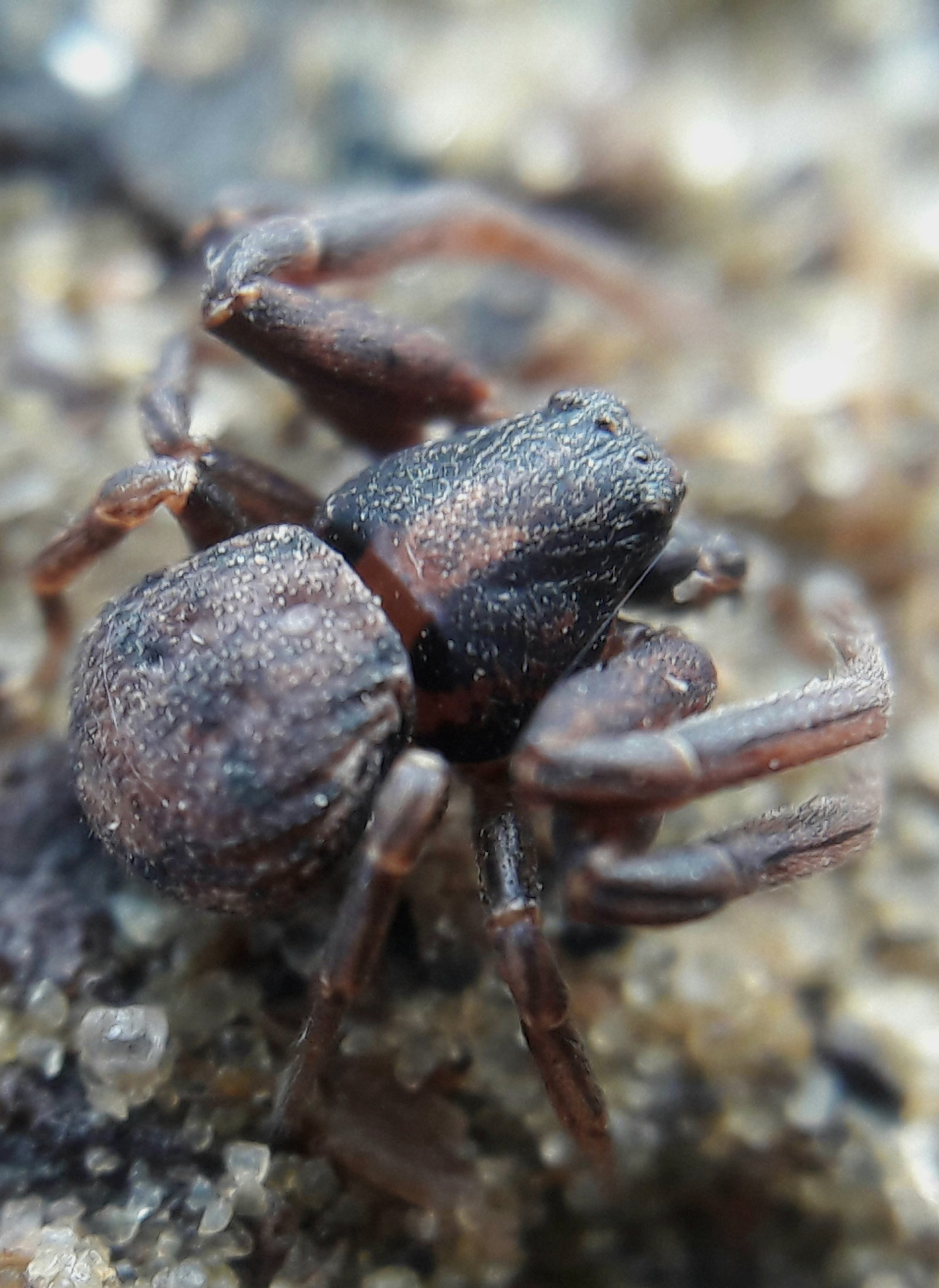 - Karın (Opisthosoma): Genellikle oval veya hafifçe yassılaşmış bir şekle sahip olup, karapaks ile benzer renkte ve yoğun tüylerle kaplıdır. Karın üzerinde belirgin koyu lekeler veya V şeklinde bir desen bulunabilir.
