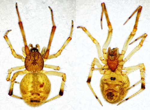 - araneae - Parasteatoda simulans - Spiders of Europe: Türün morfolojik detayları, dağılımı ve erkek ile dişi özellikleri hakkında bilgi.