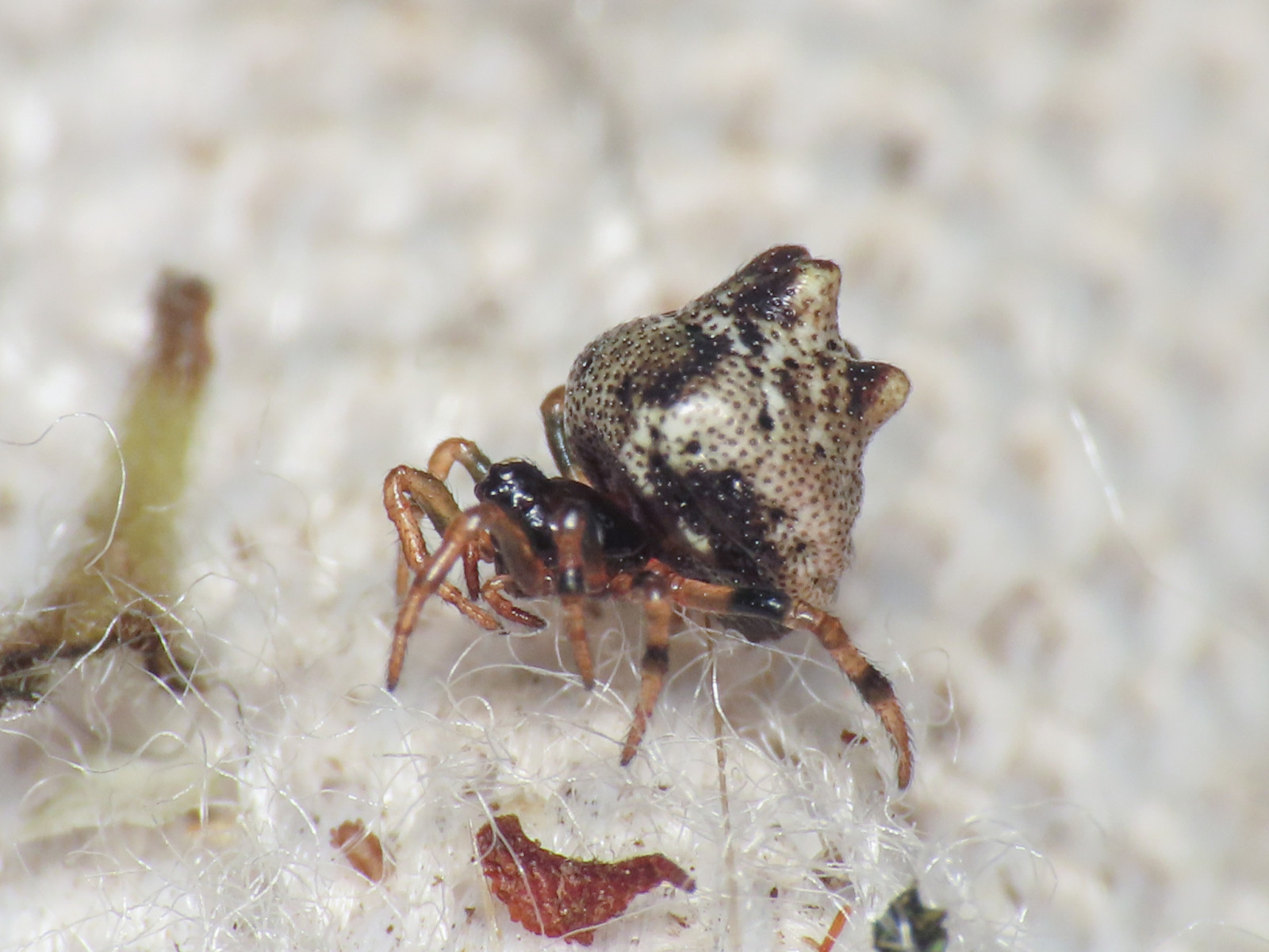 - Karın (Opisthosoma): Karın, bu türün en dikkat çekici özelliğidir. Genellikle yuvarlak veya oval şekilli olmasına rağmen, üzerinde birkaç adet belirgin, sivri veya yuvarlak çıkıntı (tüberkül) bulunur. Bu çıkıntılar, örümceğe zırhlı veya dikenli bir görünüm kazandırır. Karın rengi genellikle koyu kahverengiden siyaha kadar değişir ve parlak olabilir.