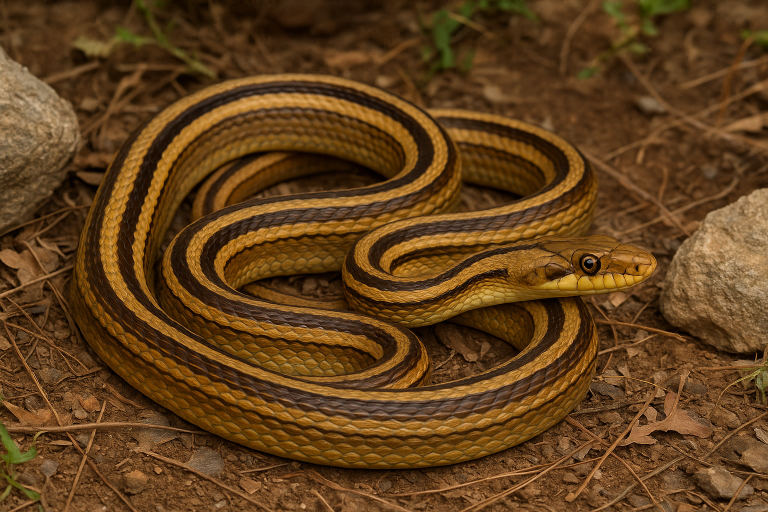 Yaygın adlar: Dört Çizgili Yılan, Çizgili Yılan