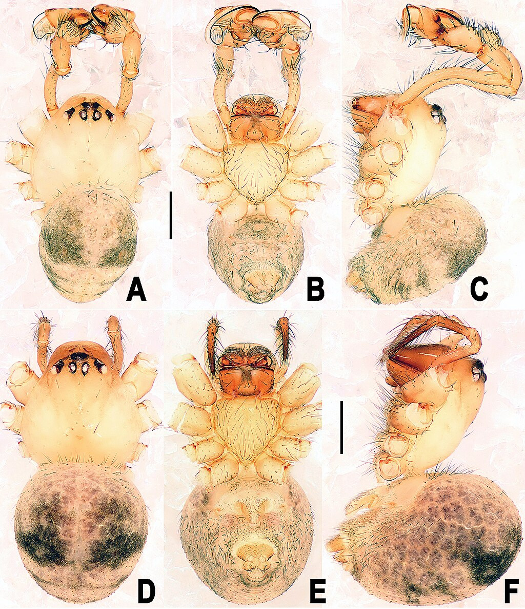 - Görünüm: Genellikle küresel veya hafif oval karınlara sahiptirler. Renkleri genellikle soluk kahverengi, sarımsı veya grimsi tonlarda olabilir. Vücutları bazen yarı şeffaf bir görünüme sahip olabilir. Bazı türlerin karapaksında (baş-göğüs) belirgin kıllar veya küçük tüberküller (çıkıntılar) bulunabilir.