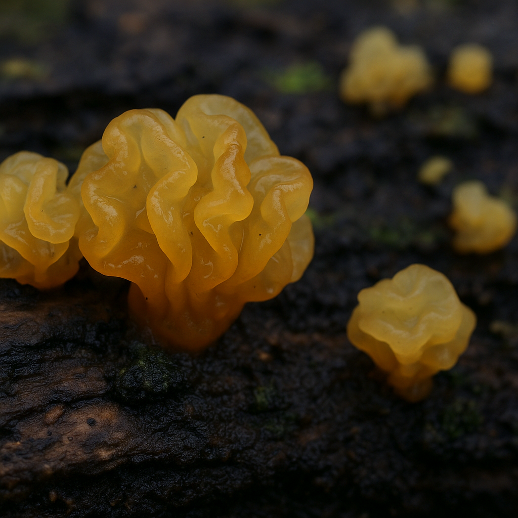 - Tremella mesenterica (Sarı beyin mantarı) → Jelatinimsi, sarı renkli