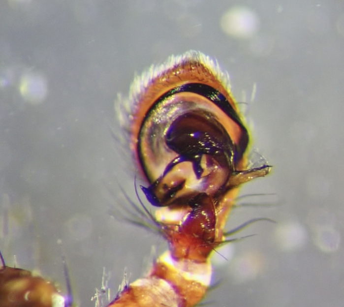 - Erkek: Vücut uzunluğu genellikle 3 ila 5 milimetre arasındadır ve dişilere göre daha koyu renklidir.