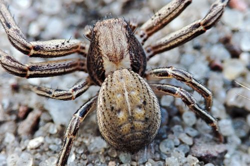 - Bacaklar: İlk iki çift bacak diğer yengeç örümceklerinde olduğu gibi daha kalın ve güçlüdür, avı yakalamak için yana doğru uzanır. Tür adından da anlaşılacağı gibi, bacaklarda belirgin çizgili veya bantlı desenler görülebilir.