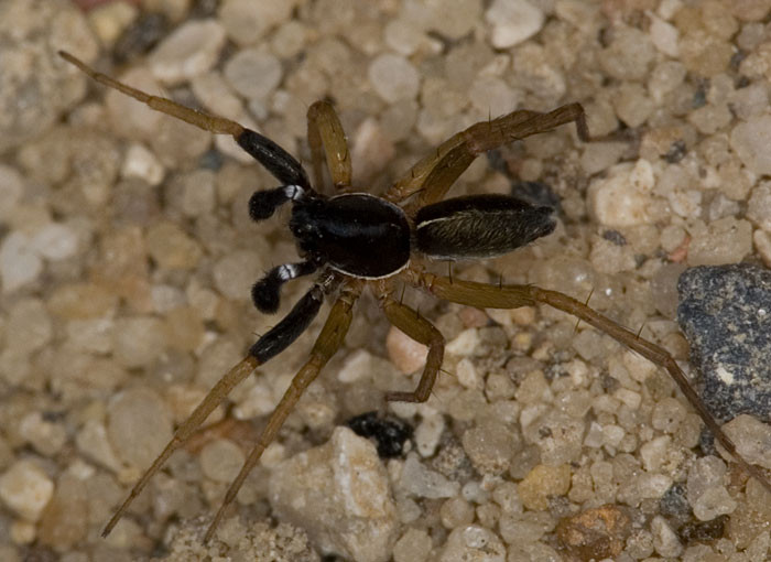- Karapaks (Prosoma): Siyahımsı kahverengi olup, kenarlarında ince beyaz bir bant ve üst kısmında küçük beyaz bir çizgi veya leke bulunabilir. Orta bandı belirgin değildir veya hiç yoktur.