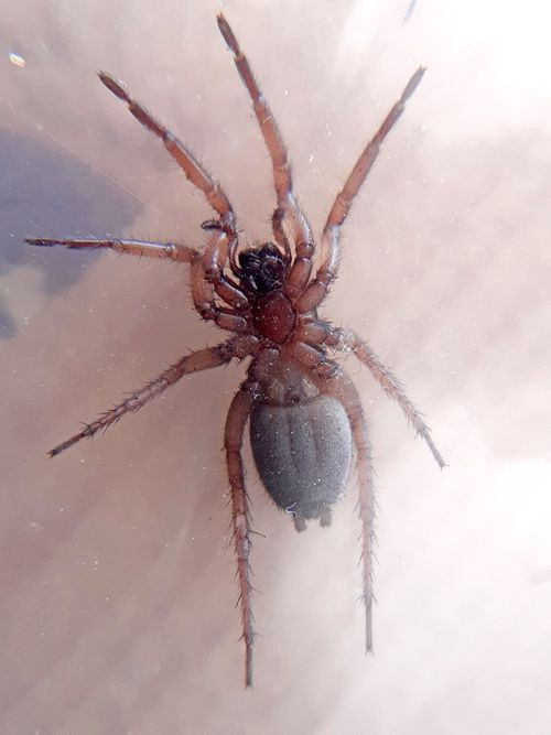 - Karın (Opisthosoma): Karın oval şekillidir ve genellikle koyu renkli olup, karapaks ile benzer bir tona sahiptir. Karında belirgin desenler genellikle bulunmaz. Ön örü memeleri (anterior spinnerets) silindirik ve belirgindir, bu da Gnaphosidae familyasının tipik bir özelliğidir.