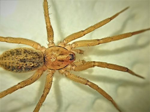 - Karın (Opisthosoma): Oval şekilli olup, üzerinde hafif beneklenmeler veya dağınık pigmentasyon görülebilir. Ön örü memeleri (anterior spinnerets) silindirik ve belirgindir, bu da Gnaphosidae familyasının tipik bir özelliğidir.