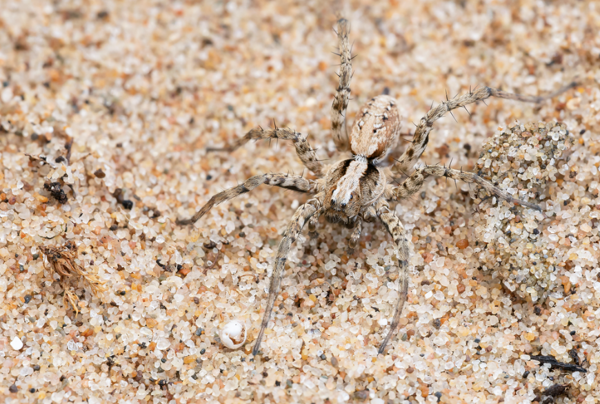 Harika bir örümcek türü daha! Xerolycosa miniata, Lycosidae familyasına (Kurt Örümcekleri) ait, özellikle kuru ve kumlu habitatları tercih eden bir örümcek türüdür. Kurt örümcekleri, ağ örmek yerine avlarını kovalayarak veya pusuya düşürerek avlanan aktif avcılardır.